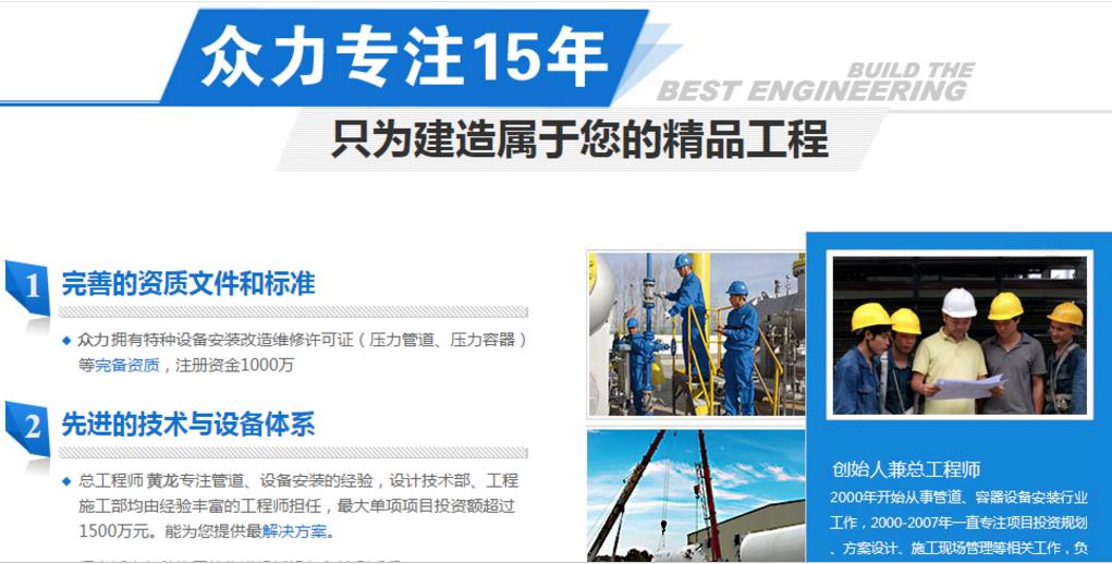 眾力持有一類二類三類壓力容器安裝許可證,GC2壓力管道安裝許可證。